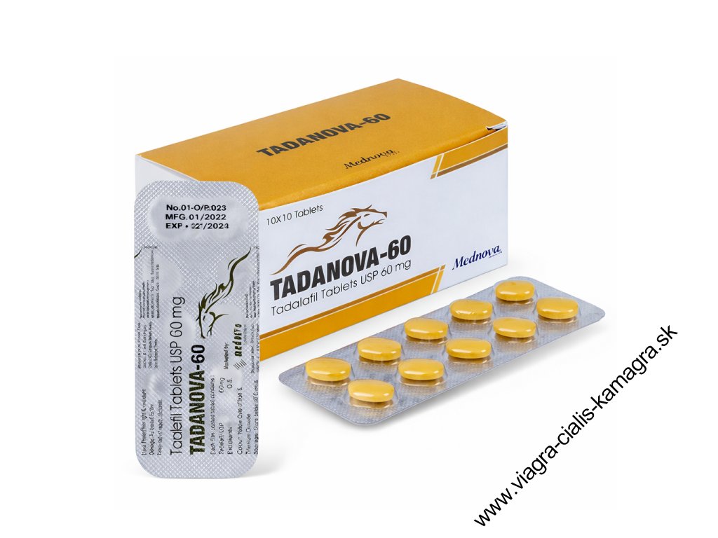 Tadanoca 60mg (Tadalafil) je vyrábaný spoločnosťou Mednova Pharmaceuticals a je to najobľúbenejšia náhrada (generikum) Cialisu (Tadalafil). Tadanova je liek pre mužov, ktorí trpia poruchami erekcie alebo ak erektilnou dysfunkciou a po jej užití je možné prakticky každému mužovi dosiahnuť kvalitnú erekciu a teda si užiť lepší sexuálny styk. citrate. Z tohto dôvodu je často nazývaný “víkendová tableta”. Vďaka dlhotrvajúcemu účinku sa Tadanova (Tadalafil) stal najviac predpisovaným liekom na liečbu erektilnej dysfunkcie. Tadanova obsahuje látku Tadalafil, ktorá stimuluje prekrvenie penisu, čím pri sexuálnej stimulácii dochádza k lepšej a pevnejšej erekcii. Tadanova (Tadalafil) tiež pomáha udržať kvalitnú dlhotrvajúcu erekciu. Tadanova 60mg (Tadalafil) účinkuje už cca po 30 minútach od užitia a jeho účinok trvá až 36 hodín. Tadanova (Tadalafil) sa stal v posledných rokoch takmer najobľúbenejším liekom na poruchy erekcie.